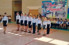 В школе прошла линейка с поднятием флагов. Подняли флаги Юнармейцы-спортсмены школы Гилфаноа А., Губайдуллин Б.