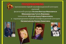 Поздравляем Вас с присвоением первой квалификационной категории. Просим Вас радовать своей работой как можно больше поколений, будьте счастливы и здоровы! С уважением администрация школы