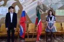 25 апреля в школе в 7:45 в торжественной форме прошло патриотическое мероприятие - Единый день выноса флагов РФ и РТ под звучание гимнов двух государств.