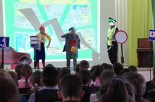 15 апреля учащиеся начальной школы посмотрели представление по правилам дорожного движения Набережночелнинского театра . Игры, конкурсы, викторины помогли ребятам закрепить знания и умения по ПДД.