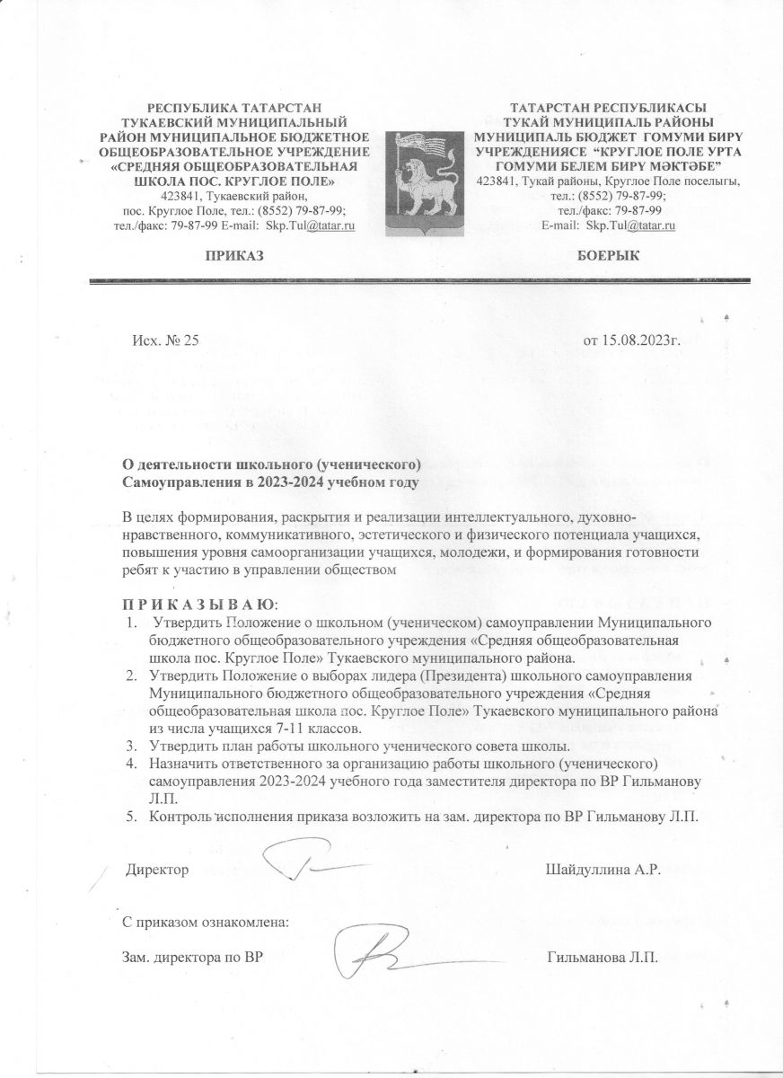 Муниципальное бюджетное общеобразовательное учреждение "Средняя общеобразовательная школа пос.Круглое Поле» Тукаевского муниципального района Республики Татарстан\Татарстан Республикасы Тукай муниципаль районы «Круглое Поле урта гомуми белем бирү мәктәбе» гомуми белем бирү муниципаль бюджет учреждениясе