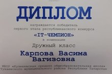 Классный руководитель Карпова В.В. и учащиеся 7-8 классов победили в номинации "Самый дружный класс"