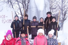 Кышкы каникулда да 5 сыйныф укучылары һәйкәл янын кардан чистартып торды. Шулай ук барлык укучылар д әби-бабайларны онытмады. Капка төпләрен ялт итеп чистарттылар.