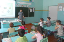 Мәктәпкә әзерлек төркеме балаларын башлангыч сыйныф укытучысы Розалия Флеровна мәктәп тормышы белән таныштыра.