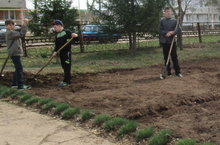 Барлык укучылар һәм мәктәп хезмәткәрләре өмәгә чыкты. Алар эреп бетмәгән карларны тараттылар, кипкән җирләрне тырмалап чүпләрен җыйдылар.