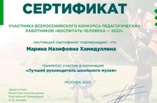 Хамидуллина М.Н. участвовала в профессиональном конкурсе "Воспитать человека" в номинации "Лучший руководитель школьного музея"