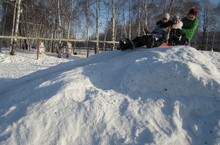 Мәктәп укучылары үзләре ясаган тауда рәхәтләнеп шуалар.