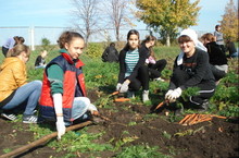 22 сентября ученики и учителя работали на пришкольном участке.