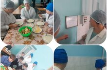 Сегодня представители родительского комитета МБОУ "Мелекесская СОШ" посетили школьную столовую в целях контроля за качеством горячего питания школьников. Перед едой дети помыли руки. Их сопроваждают классные руководители. В обеденном зале столы накрыты для обучающихся по классам. Было проверено соответствие приготовленных блюд утвержденному меню. Порции соответствуют требованиям. Сотрудники пищеблока соблюдают гигиенические требования./Бүген Мәләкәс урта мәктәбенең ата-аналар комитеты вәкилләре мәктәп укучыларының кайнар туклану сыйфатын тикшереп тору максатыннан мәктәп ашханәсендә булдылар. Балалар ашар алдыннан кулларын юдылар. Аларны класс җитәкчеләре озата бара. Аш бүлмәсендә сыйныф укучылары өчен өстәлләр куелган. Пешкән ризыкларның расланган менюга туры килүе тикшерелде. Бүлекләр таләпләргә туры килә. Азык-төлек блогы хезмәткәрләре гигиена таләпләрен үтиләр.