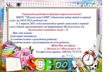 Приём заявлений в 1 класс на 2022\2023 учебный год начинается с 1 апреля. Количество вакантных мест - 25 23.03.2022