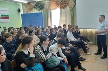Сегодня начальник ГИБДД Тукаевского района РТ Ганиев Ш.М. провел профилактическую беседу с учащимися МБОУ "Мелекесская СОШ".
