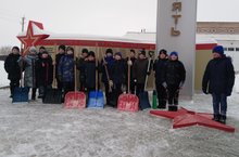 Сегодня обучающиеся 4 класса очистили памятник от снега.