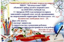 С 1 февраля начинается набор детей в 1 класс на 2020-2021 уч.год 21.01.2020