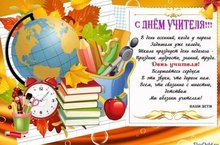 Уважаемые педагоги, поздравляем Вас с профессиональным праздником, Ваша профессия — это образец добродетели, человеколюбия и мудрости. Ваш каждодневный путь — это путь к сердцам подрастающего поколения, путь к вершинам знаний. Будьте здоровы, успешны, благополучны, творчески активны. Пусть благодарность Ваших учеников станет для Вас достойной наградой.