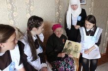 В рамках республиканского проекта "Наставление, опаленное войной" активисты движения "Волонтеры Победы Республики Татарстан" МБОУ "Мелекесская СОШ" посетили на дому труженицу тыла Трофимову Евдокию Александровну.Дети внимательно, затаив дыхание, слушали рассказы ветерана, задавали свои вопросы о войне, о полученных медалях.
