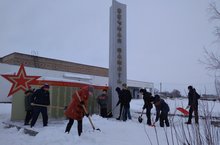 В рамках проведения оборонно-спортивной работы учащиеся 6 и 8 классов очистили памятник от снега для проведения митинга ко Дню защитника Отечества. Классные руководители: Борисова Г.К.и Умнова Л.И.