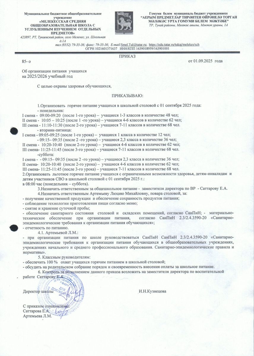 Положение об организации горячего питания обучающихся в МБОУ "Мелекесская СОШ"
