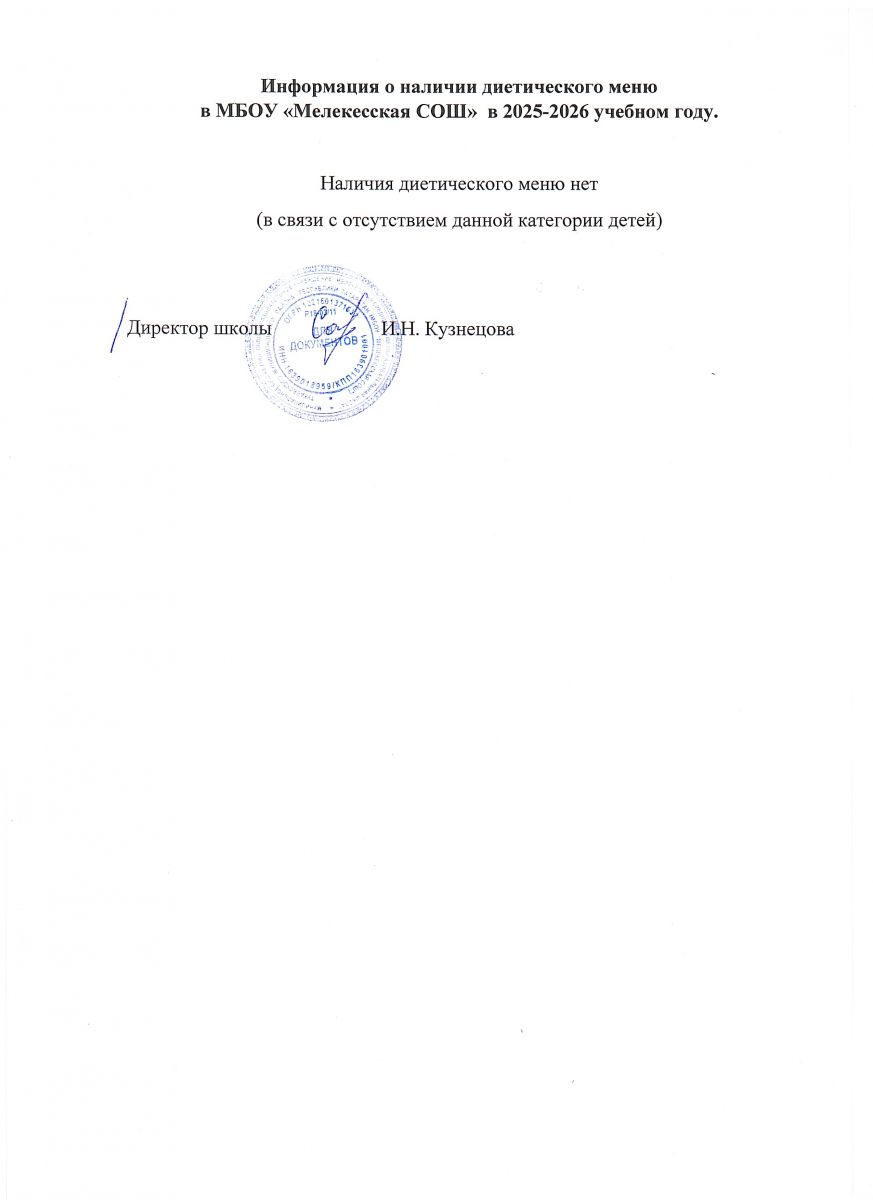 Информация о наличии диетического меню