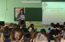 16 сентября единый урок культуры для учащихся 1-4 классов провела учительница начальных классов Ахметзянова М.Н. Она рассказала и показала детям о культурных традициях родного края, о знаменитых местах Татарстана. Библиотекарь школы Альфинур Ханифовна вручила детям культурные дневники и пожелала быть активными.