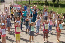 Сегодня проводилась Республиканская акция по пропоганде здорового образа жизни "Будь здоров! Танцуй!", где воспитанники лагеря танцевали флеш-моб.