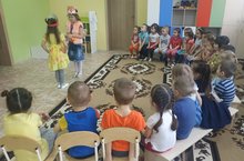 Воспитанники старшей группы стали артистами детского театра и показали сказку«Колобок» на русском языке воспитанникам средней группы. Представление было интересным и увлекательным.
