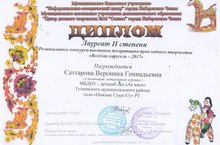 Поздравляем с победой воспитателя Саттарову Веонику Геннадьевну - диплом 2 степени в номинации интерьерная игрушка регионального конкурса декоративно - прикладного творчества "Веселая карусель - 2017". Молодец!