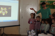 Воспитатель 2 младшей группы Галиева Г.В. провела занятие «Никто не забыт», посвященное 69-летию победы в Великой Отечественной Войне. Она рассказала о героическом подвиге народа в годы ВОВ. Воспитанники получили много полезной информации, прослушали песни на военную тему.