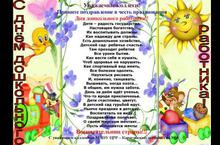 В день воспитателя и всех дошкольных работников, мы очень рады поздравить всех сотрудников детских садов. Все вы: и воспитатели, и помощники воспитателей, и повара, и музыкальные работники и все остальные – трудитесь на благо нашего подрастающего поколения. Ваш труд благороден. Вы вносите неоценимый вклад в воспитание подрастающего поколения, даете им возможность вырасти умными, способными, здоровыми, физически развитыми людьми. Спасибо вам большое за ваш бескорыстный труд, за вашу любовь к детям, за терпение, за стремление к работе. Желаем вам всего самого лучшего: крепкого здоровья, счастья, везения, семейного благополучия!