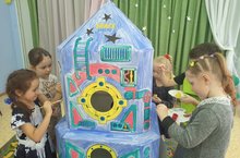 В саду идёт подготовка к празднованию 60-летия полёта в космос.