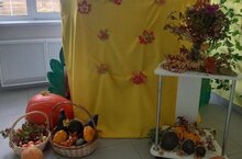 Воспитатель Лариса Викторовна, совместно с родителями и воспитанниками, оформили фотозову "Волшебство осени"