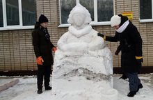 Идет строительсво снежного городка.