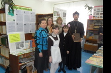 В рамках преподавания предмета основы религиозной культуры и светской этики в школе прошла благотворительная встреча "История православной книги", на которой присутствовали настоятель храма Живоначальной Троицы иерей Александр (Щенников), прихожанка храма, учитель филолог И.В.Борисова. В дар школе были преподнесены книги.