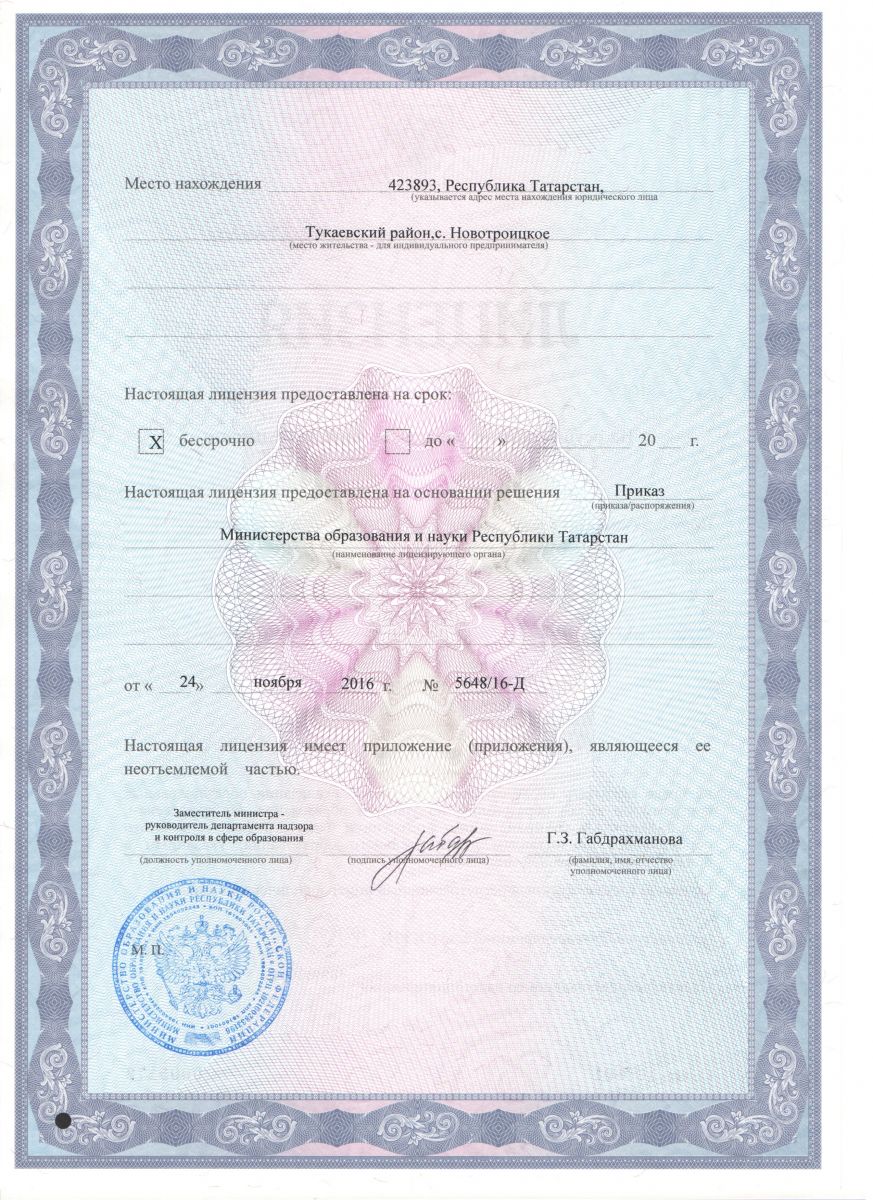 Адрес: 423893, Республика Татарстан, Тукаевский район, с. Новотроицкое, ул. Ленина, д.10