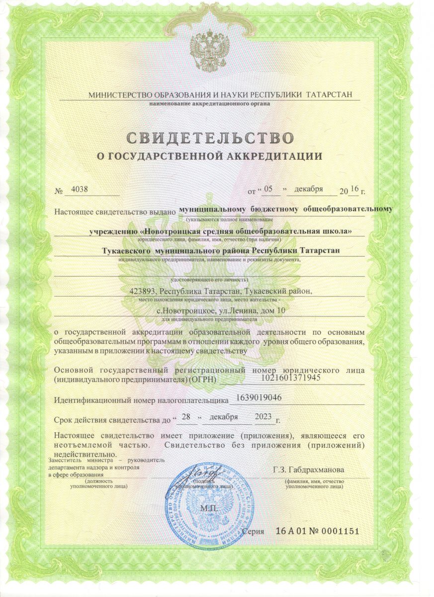 Муниципальное бюджетное общеобразовательное учреждение «Новотроицкая средняя общеобразовательная школа» Тукаевского муниципального района Республики Татарстан/ Татарстан Республикасы Тукай муниципаль районы "Новотроицк урта гомуми белем бирү мәктәбе" гомуми белем бирү муниципаль бюджет учреждениесе
