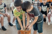 Сегодня 10.12.2019 года в старшей группе воспитатель Хатыпова Л.К. провела познавательно-исследовательскую деятельность на тему "Твердое и жидкое". Дети с воспитателем провели эксперимент: жидкое, твердое; тонет, не тонет.