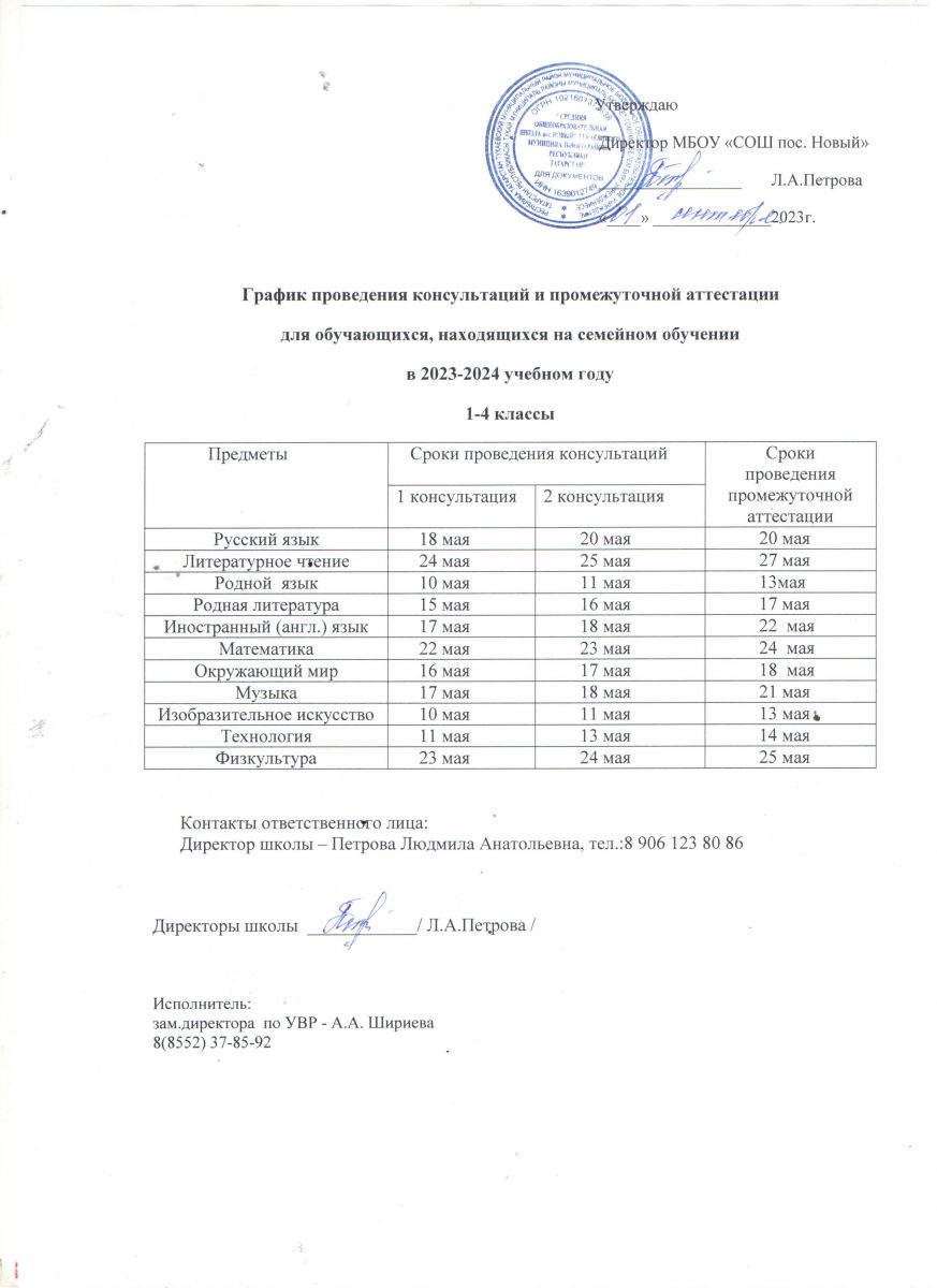 График промежуточной аттестации (семейное обучение) 1-4 классы 2023-2024 уч.год