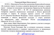 Всероссийский конкурс «За служение спорту» (за вклад в развитие физической культуры и спорта) 31.03.2015