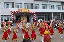 Выступление хореографического коллектива "Задоринки" на праздничной линейке, посвященной Дню Знаний в Круглополькой общеобразовательной школе. (Филиал п. Круглое поле преподаватель Щелконогова Г.Е.)