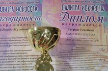 Администрация ДШИ поздравляетСАМАТОВУ ИЛЬЗИРУс дипломом 2 степенирук-ль Резеда Мухаматхамисовна филиал ДШИ п.НовыйВЫ НАША ЧЕСТЬ!ВЫ НАША СЛАВА!!ВЫ НАША ГОРДОСТЬ!!!Награждение проходило в здании Картинной Галереи Набережных Челнов -