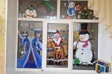 Подготовка к праздничной елке. Учащиеся художественного отделения создают сказку своими руками, расписывая окна новогодними рисунками.