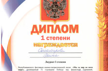 Гусманова Алия - диплом участника,рук-ль Саматова Р.М.