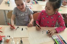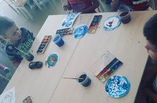 На занятии в группе "Жемчужинки" Ахаева О.Ю. познакомила детей с историей возникновения народного художественного промысла,формировалась умение различать и называть элементов узоров гжели (прямые линии различной толщины, точки,сеточки,бордюры,капельки)