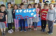 На занятии приуроченному к празднованию Победы в Великой Отечественной войне в подготовительной группе "Бабочки" воспитанники беседовали о Великой Отечественной войне вместе с пендагогом Маннановой Э.Г., а так же смотрели презентацию. Слушали песни военных лет и выполнили коллективную открытку!