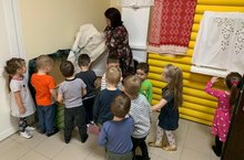 В ДОУ решаются задачи по раннему приобщению детей к народной культуре, познанию прошлого. Одна из форм ознакомления детей с культурой и традициями своего народа – организация в детских садах мини-музеев. В нашем детском саду функционирует мини-музей народного быта. Сегодня воспитаннки второй младшей группы «Зайчата» окунулись в атмосферу быта середины XX века. Воспитатель Гареева показала и рассказала, как жили наши прабабушки.