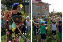 Сегодня в детском саду прошел праздник прощания с летом. Во время мероприятия в гости к воспитанникам пришли такие персонажи как Кикимора и Лето.