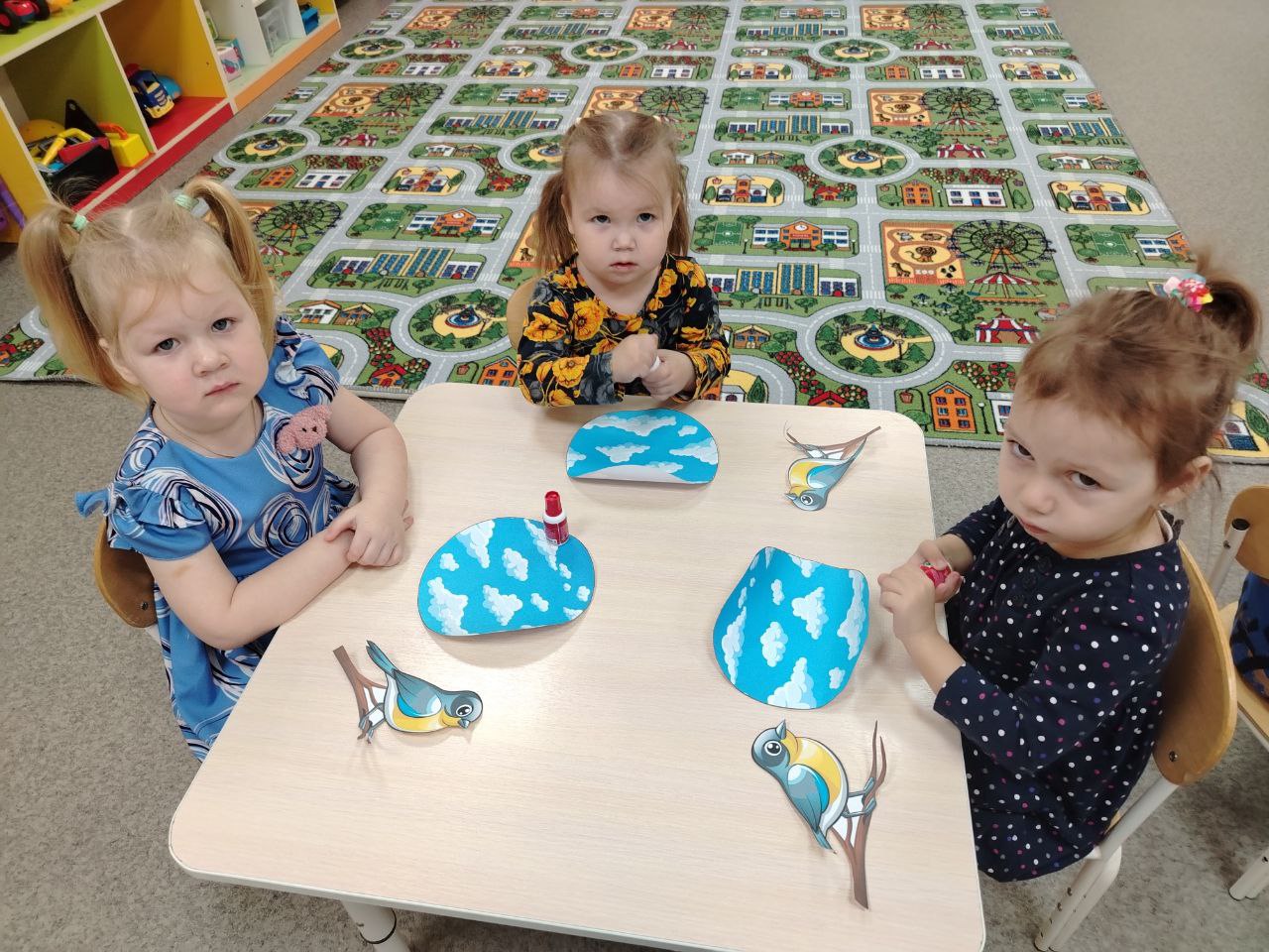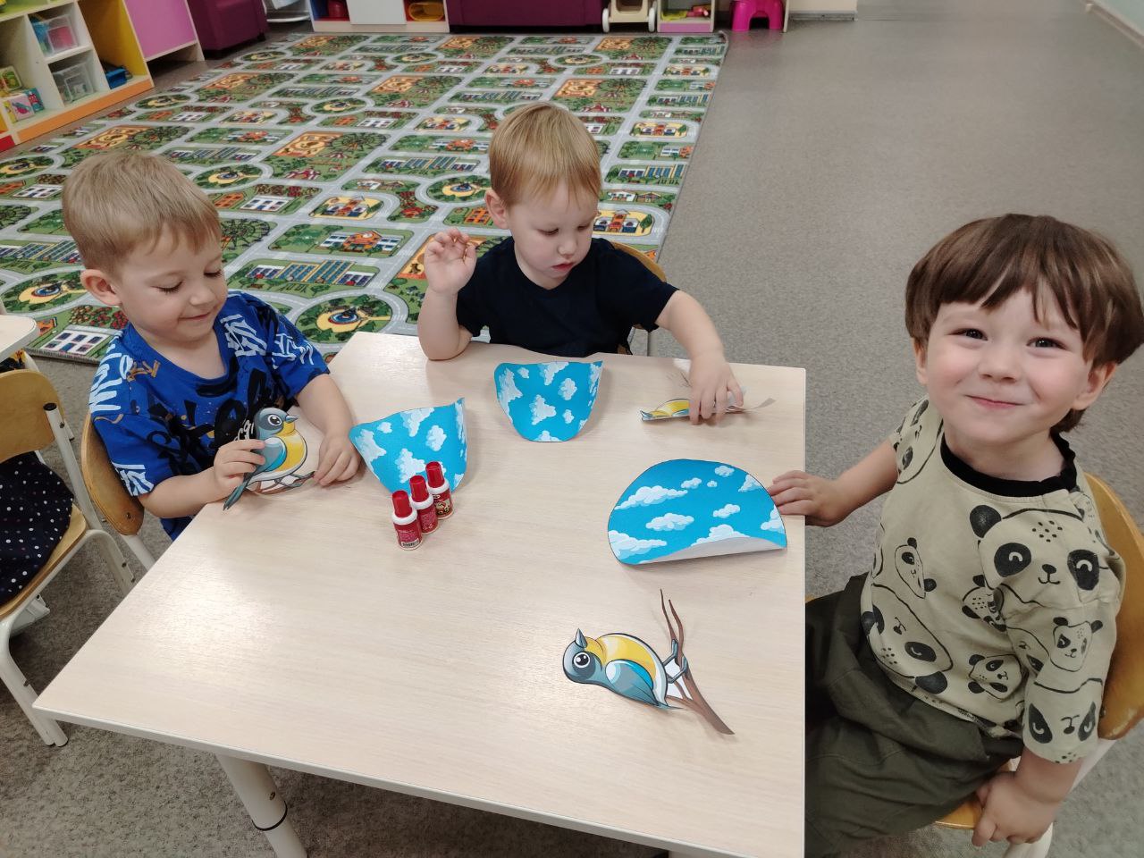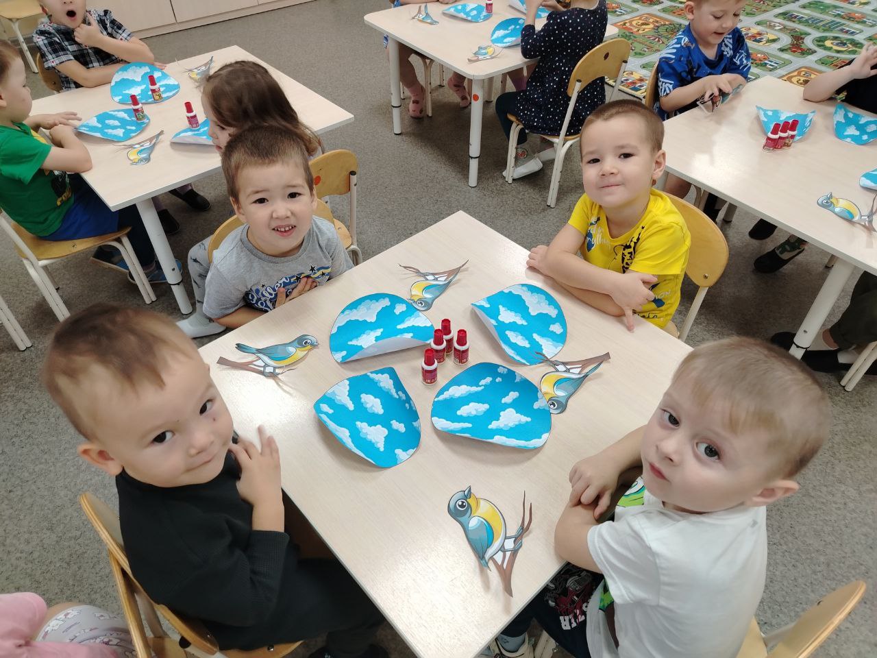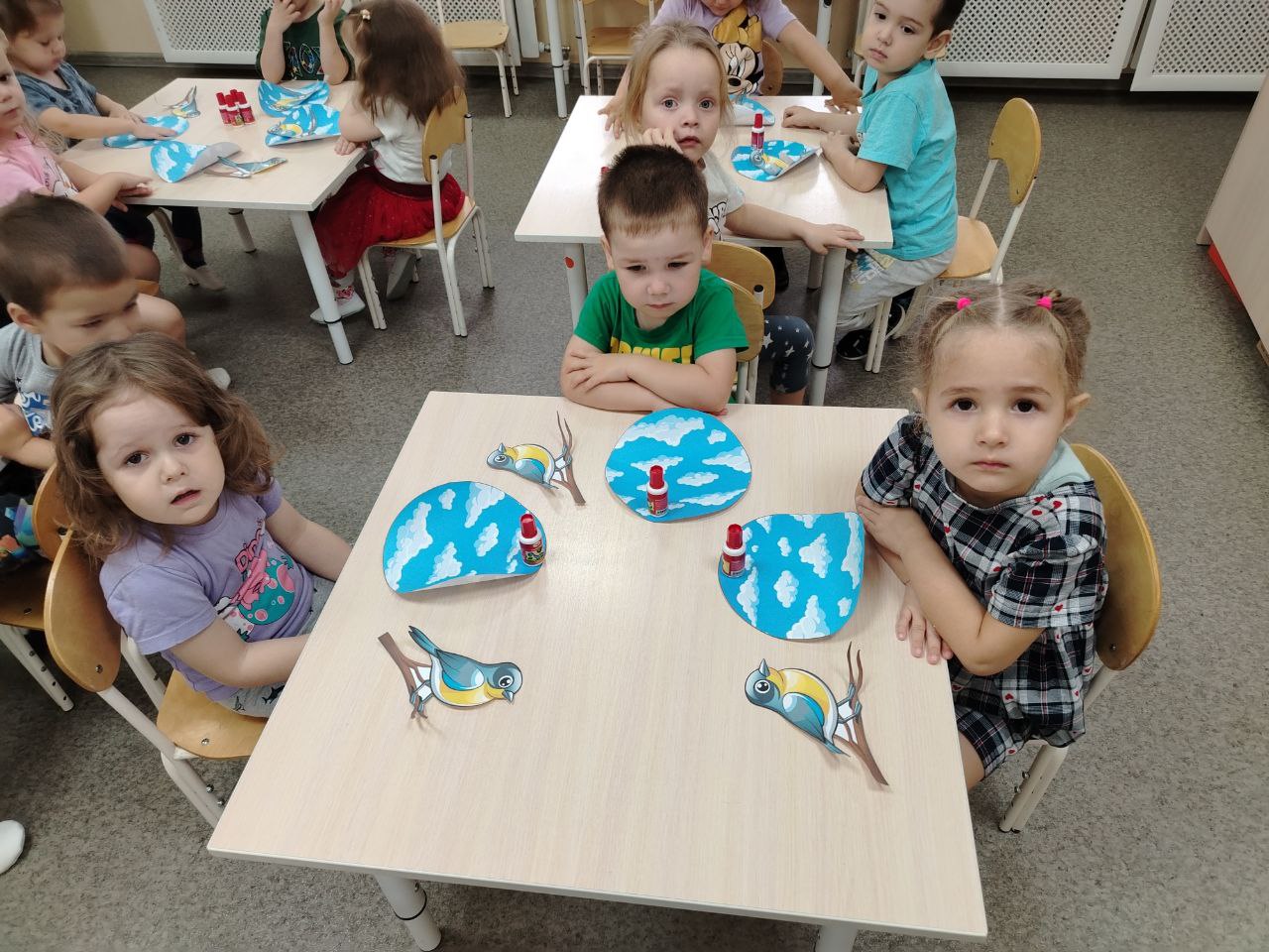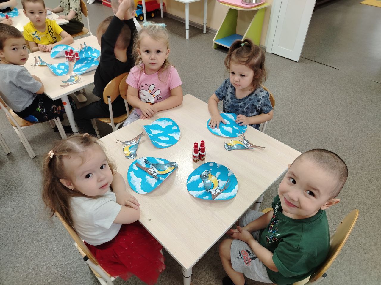 Ребята выполнили творческую работу из бумаги и картона приклеивая этих прекрасных, маленьких птичек!