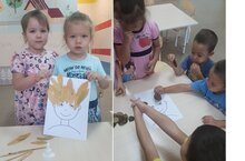 Воспитанники средней группы «Капельки» совместно с педагогом Ахаевой О.Ю. выполнили подарки своим дедушкам и бабушкам в нетрадиционной технике аппликации, использую природный материал, - «Осенний портрет». Работы получились необычными и интересными.