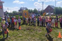 Сегодня на спортивной площадке организованы весёлые спортивные игры «Труд людей летом» для детей всех возрастных групп