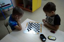 Дети средней группы «Жемчужинки» в режимные моменты совместно с воспитателем Гущиной И.А. увлеченно играют в шашки и изучают основные приемы игры в эту занимательную игру.