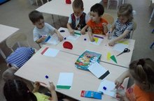 Воспитанники средней группы «Жемчужинки» выполнили аппликацию из геометрических фигур «Кораблик»